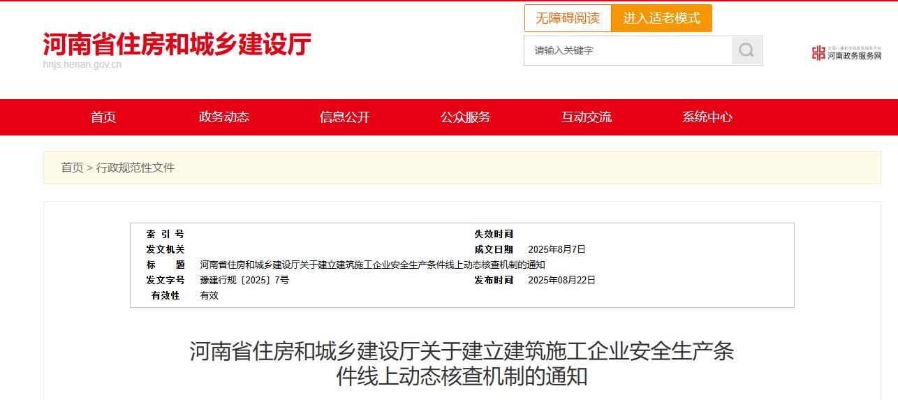省住房城乡建设厅通过安全生产许可证线上动态核查模块,重点核查建筑施工企业安全生产管理人员配备情况、在建项目总包单位安全生产许可证状态、建筑施工企业安全生产许可证和资质证书匹配情况以及建筑施工企业安全生产许可证行政处罚情况。